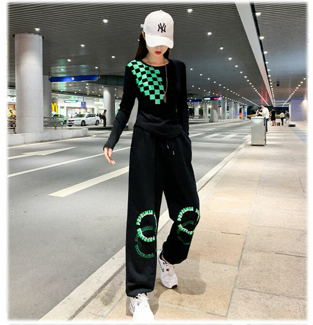 Color: Black Tops+Black Pants, Green Tops+Black Pants