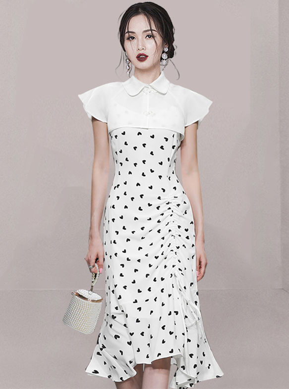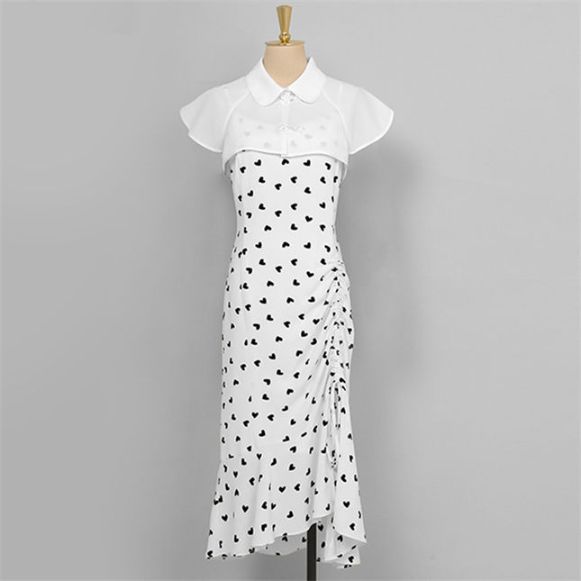 Doll Collar Short Tops with Draw-string Fishtail Straps Dress