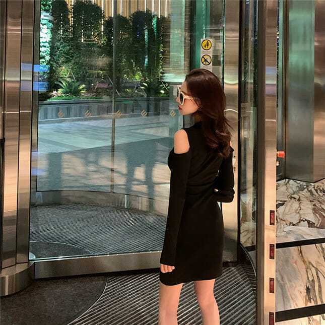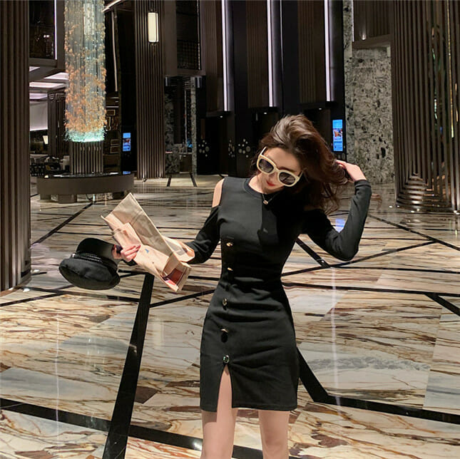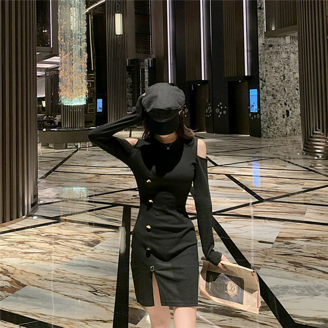 Fashion Korea Off Shoulder Single-breasted Slim Dress 6