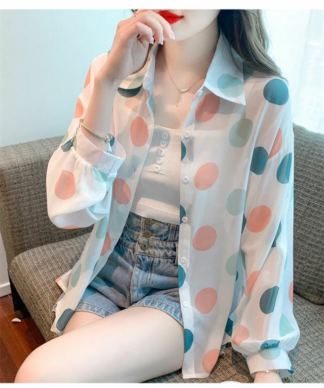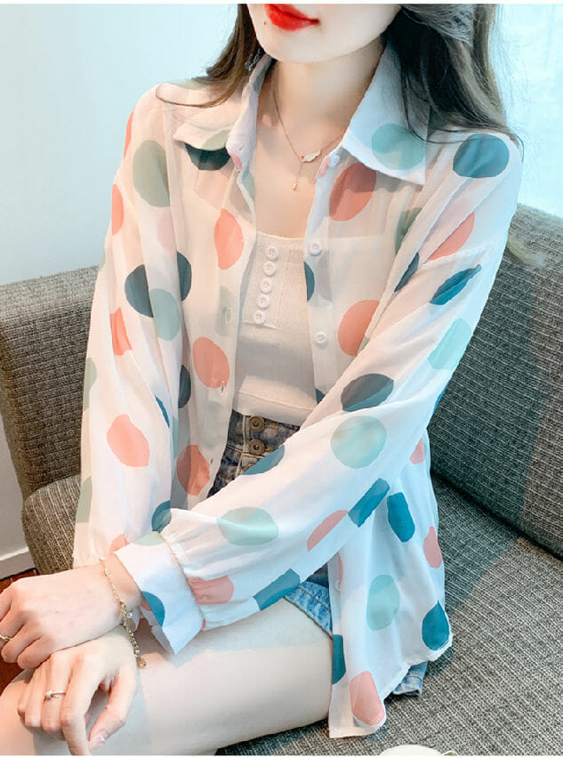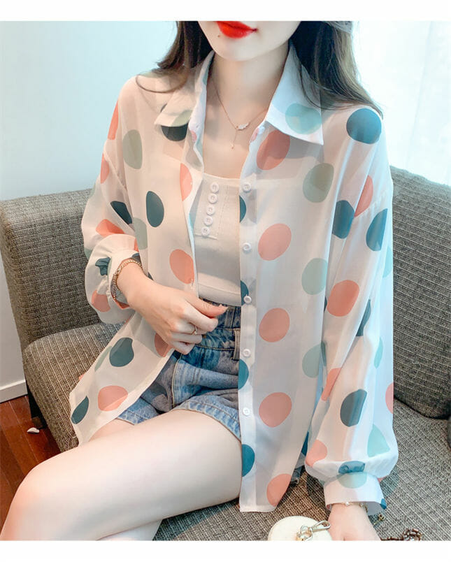 Be the first to review “Fashion Summer Colorful Circles Puff Sleeve Chiffon Blouse”