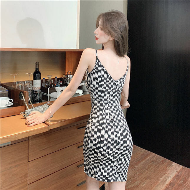 Fashion Summer Houndstooth Straps Slim Sexy Dress 6