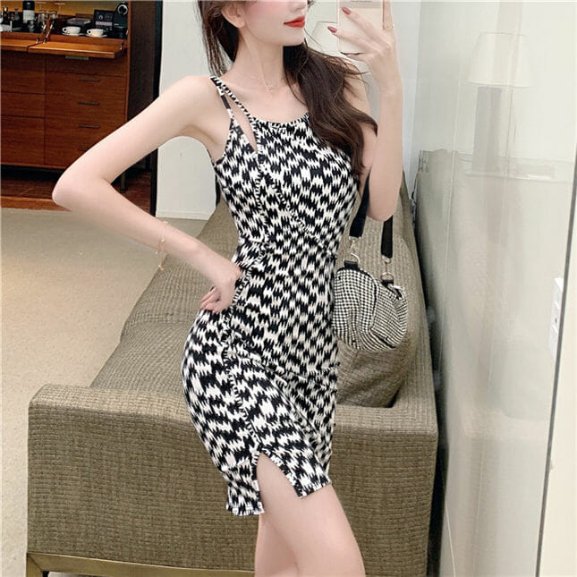 Fashion Summer Houndstooth Straps Slim Sexy Dress