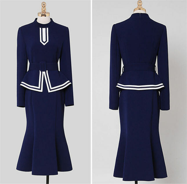 Be the first to review “Fashion Women Belt Waist Color Block Fishtail Slim Dress Set”