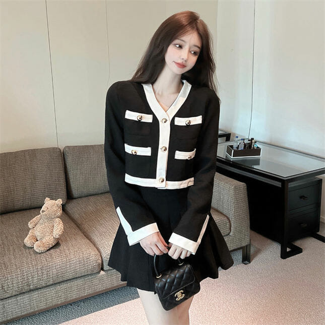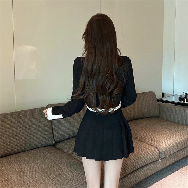 Grace Fashion Color Block Single-breasted Pleated Dress Set 6