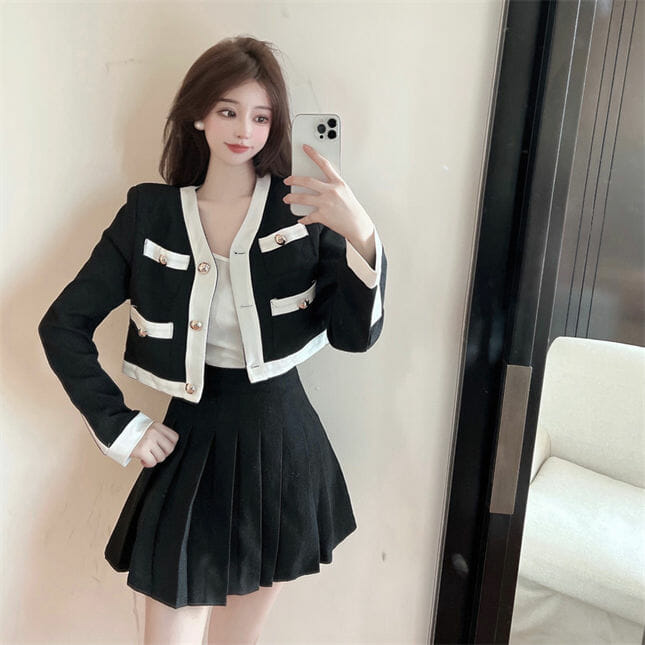 Be the first to review “Grace Fashion Color Block Single-breasted Pleated Dress Set”
