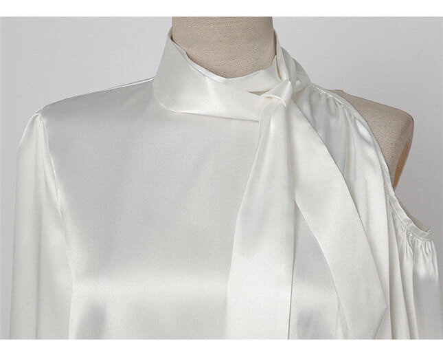 Be the first to review “Grace OL Off Shoulder Tie Collar Blouse with Split Midi Skirt”