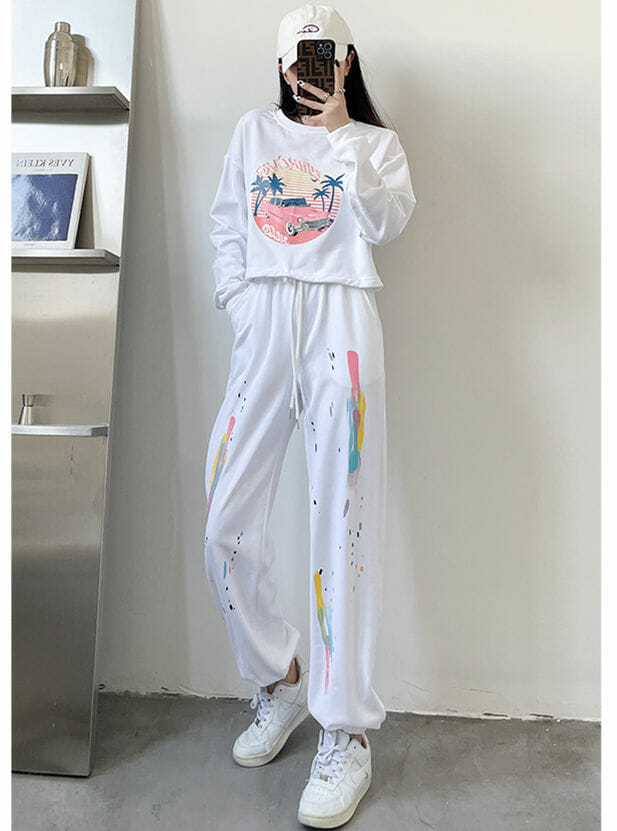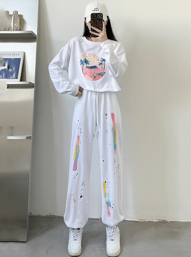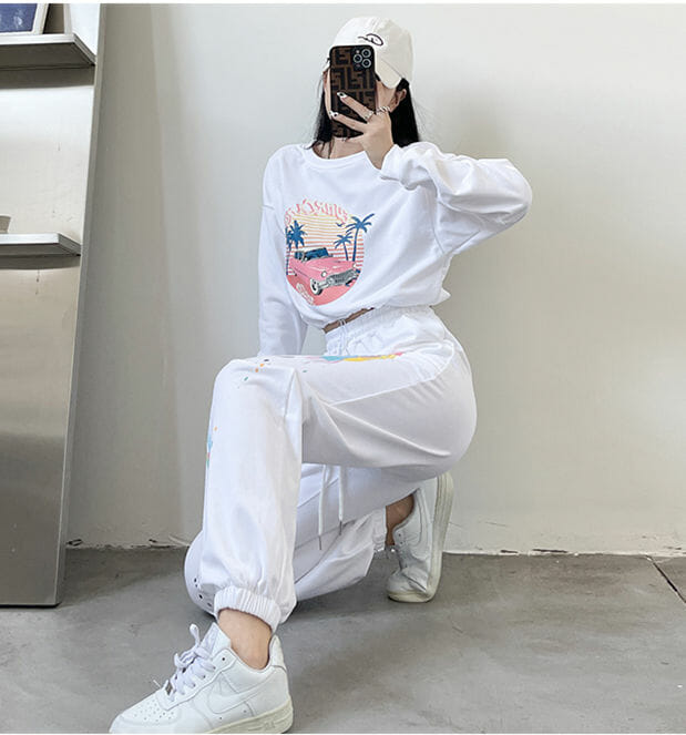 L: Tops 45cm, Bust 108cm. Pants 95cm, Waist 64cm