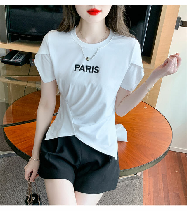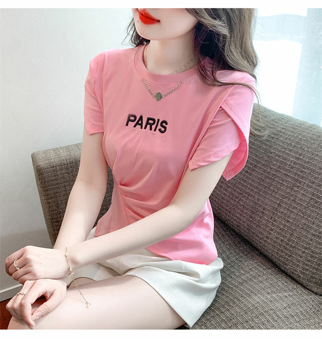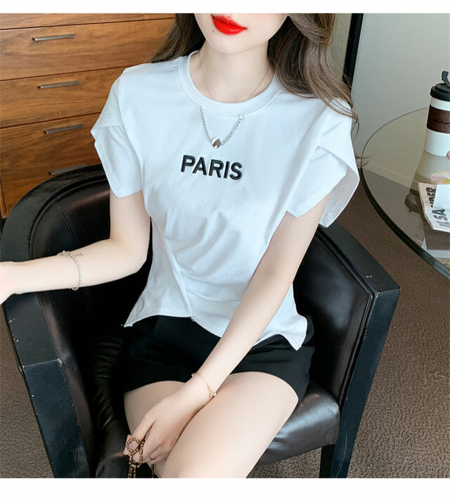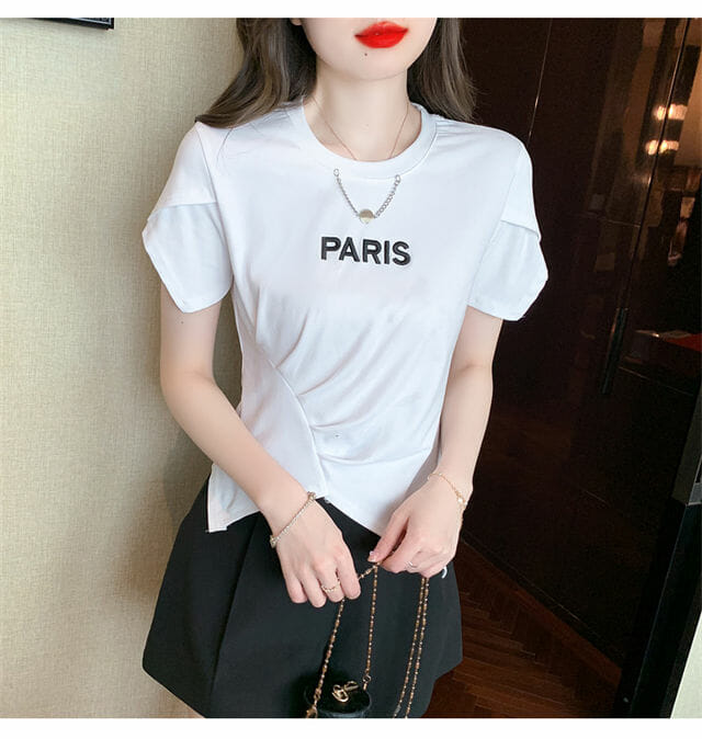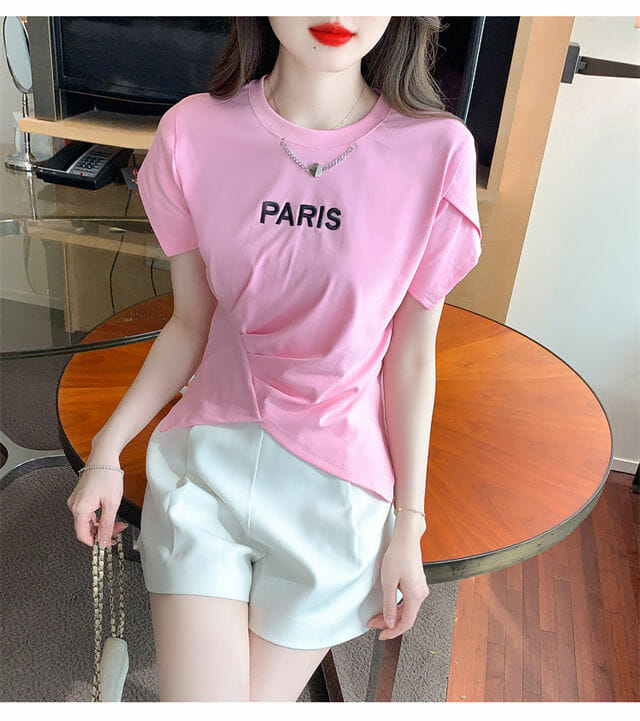 Hot Selling 2 Colors Chain Collar Letters Embroidery Pleated Tees 7