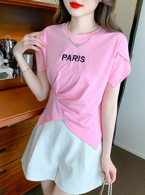 Be the first to review “Hot Selling 2 Colors Chain Collar Letters Embroidery Pleated Tees”
