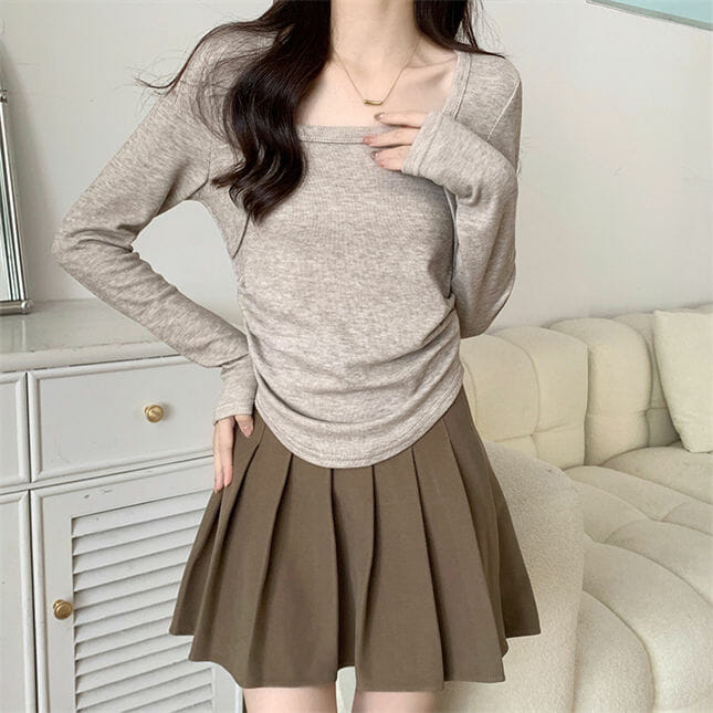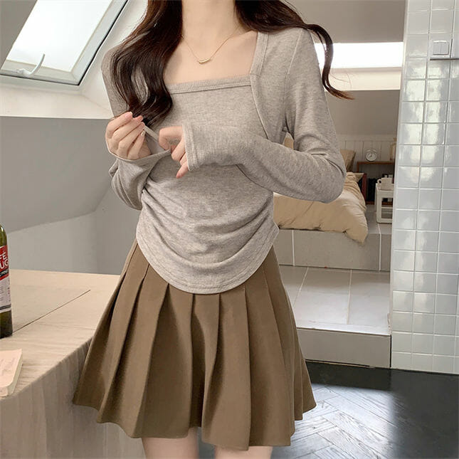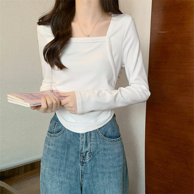 Korea 3 Colors Square Collar Short Cotton T-shirt 7