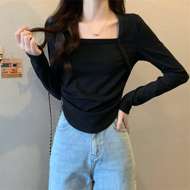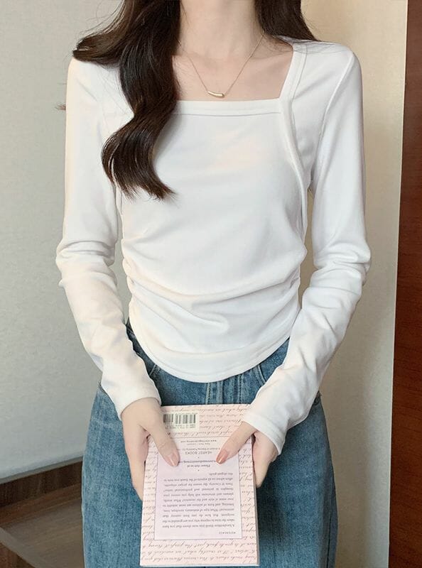 Korea 3 Colors Square Collar Short Cotton T-shirt