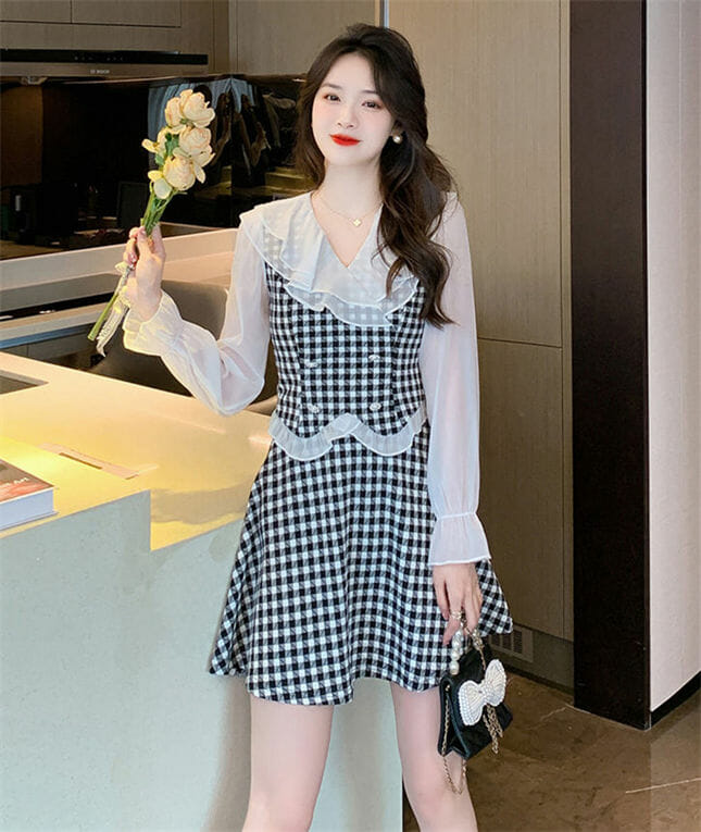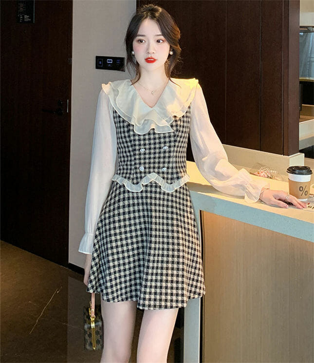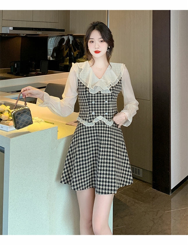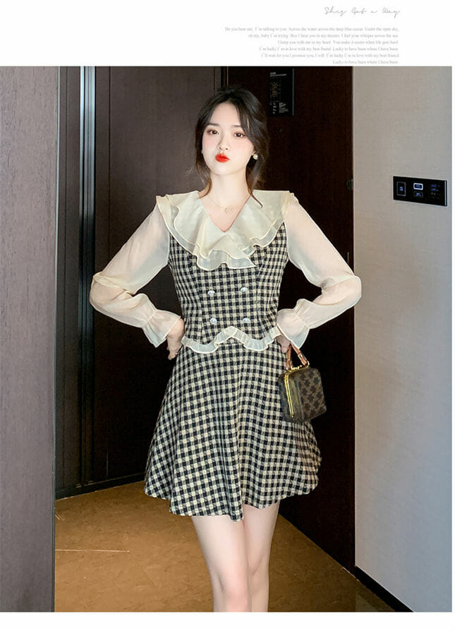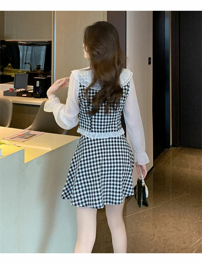 Lovely 2 Colors Flouncing Collar Plaids Dress Set 7