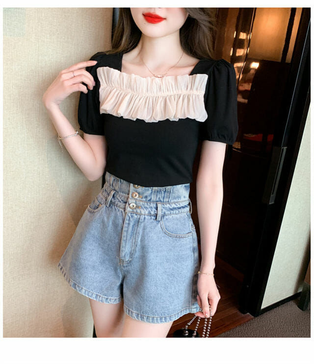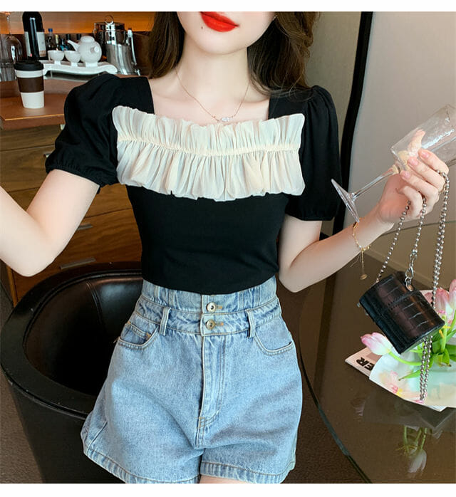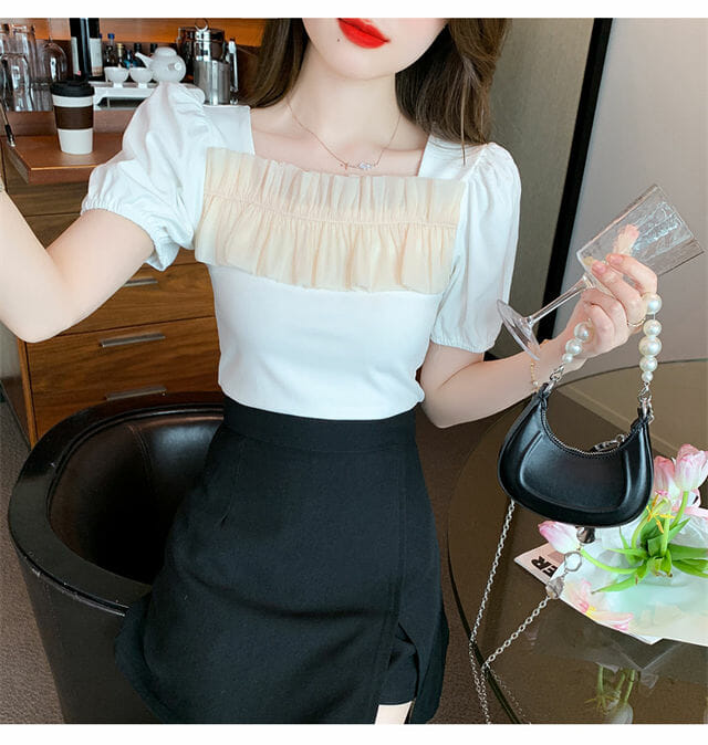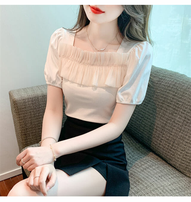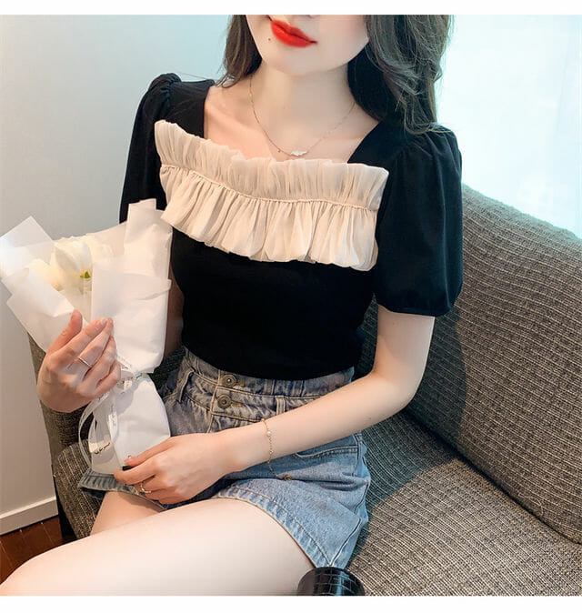 S: Length 52cm, Bust 86cm, Shoulder 35cm, Sleeve 16cm