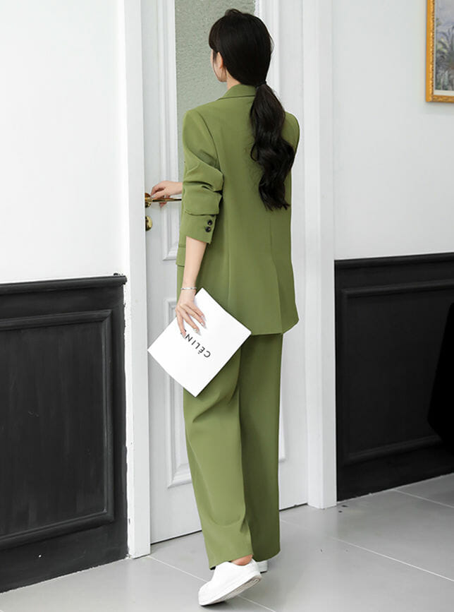 Modern OL 2 Colors Loosen Jacket with High Waist Long Pants 7