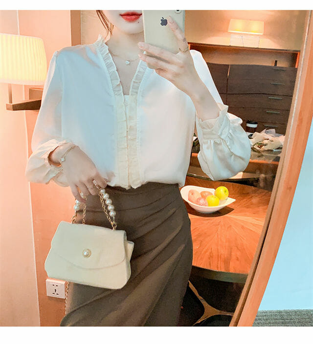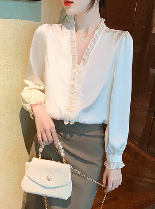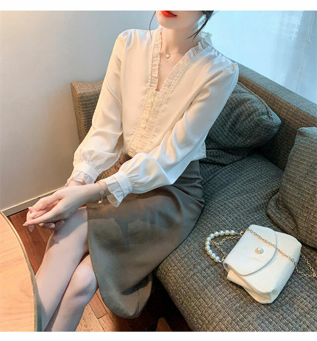 New Arrive Flouncing V-neck Long Sleeve Blouse 6