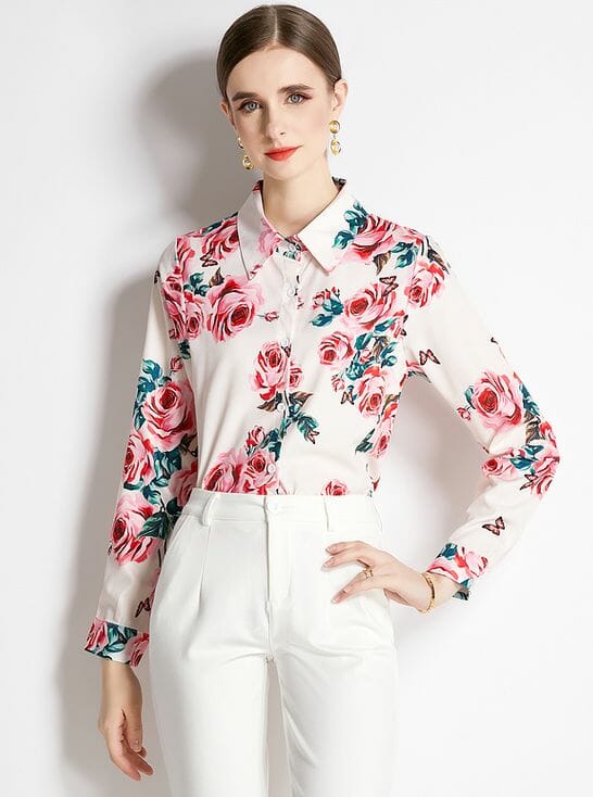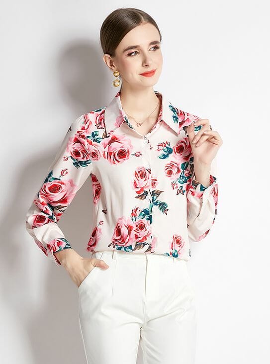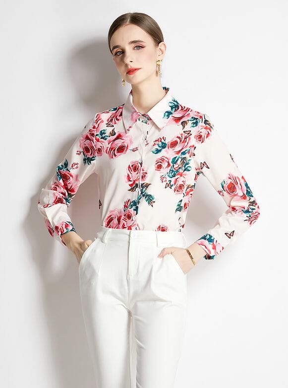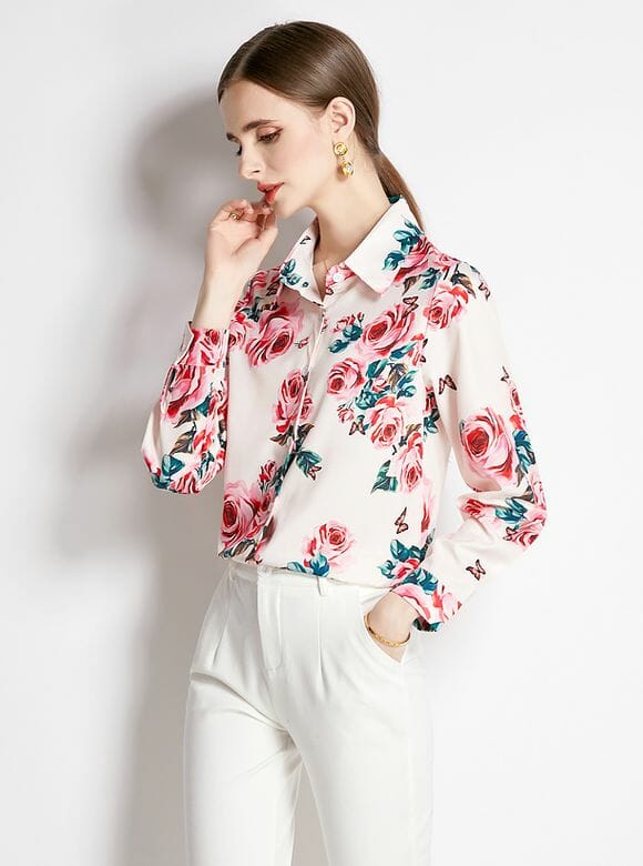 Be the first to review “Pretty Europe Shirt Collar Flowers Long Sleeve Blouse”
