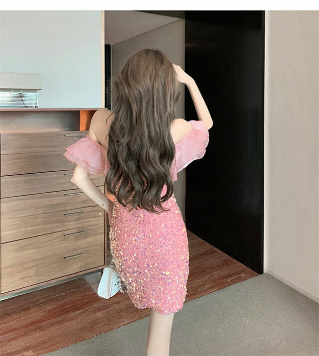 Pretty Flouncing Boat Neck Sequins Short Dress 6