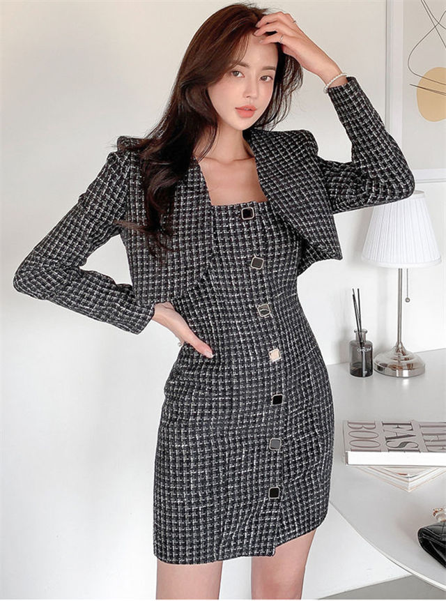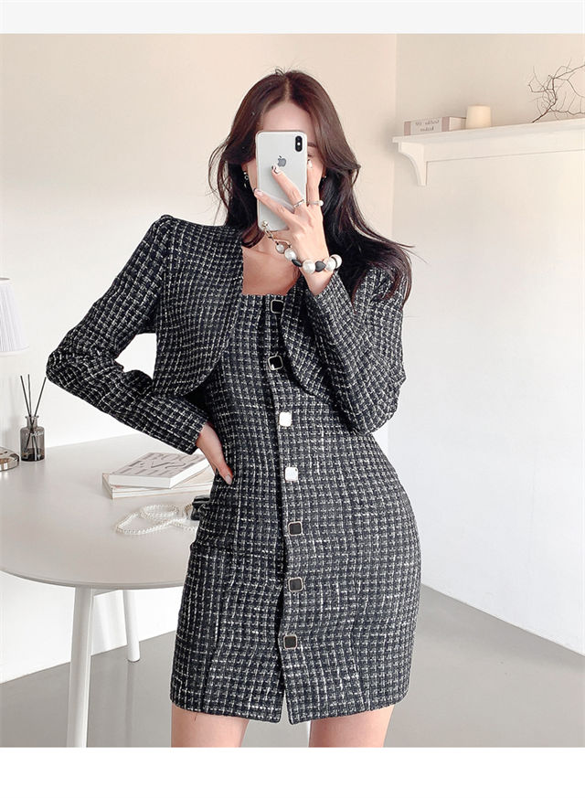 Quality Fashion Short Jacket with Single-breasted Tweed Dress 7