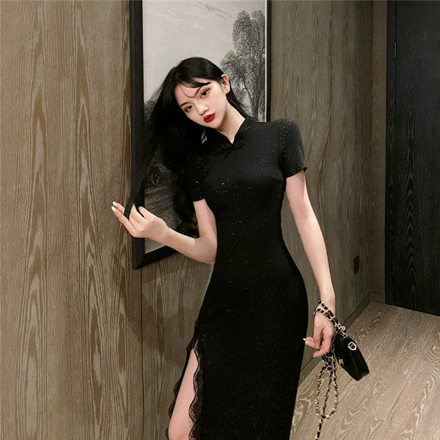 Retro Charming Split Shining Bodycon Cheongsam Dress