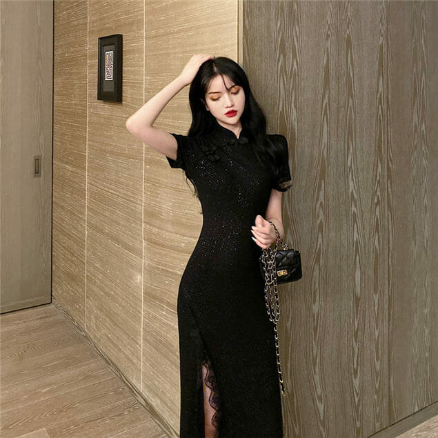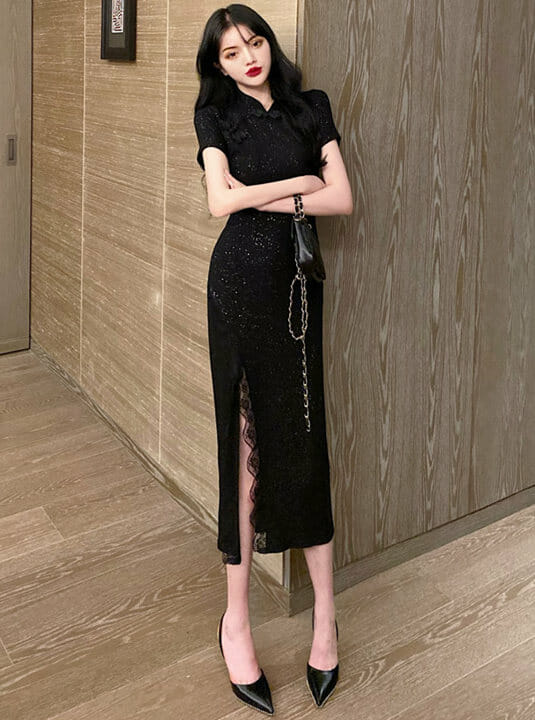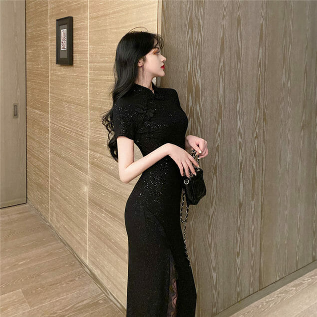 Retro Charming Split Shining Bodycon Cheongsam Dress 7