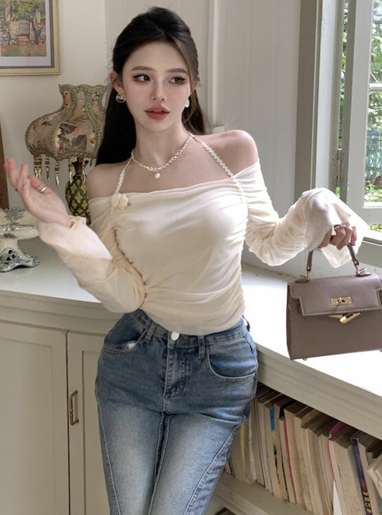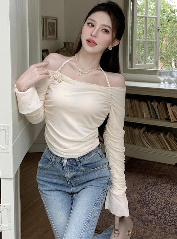 Be the first to review “Retro Fashion Boat Neck Pleated Gauze Puff Sleeve Blouse”