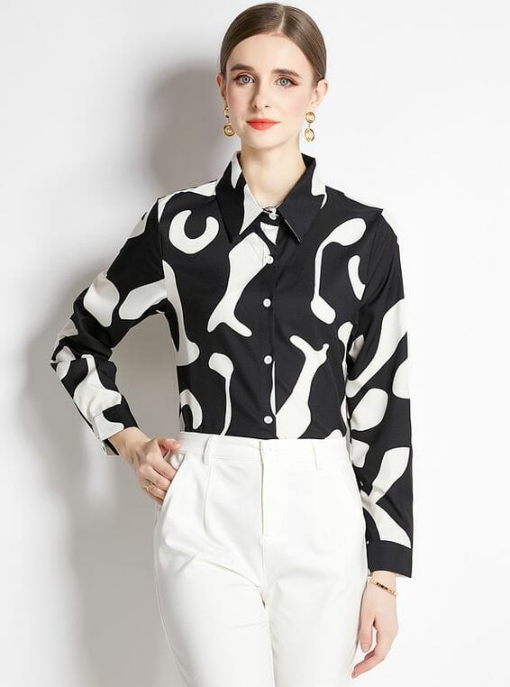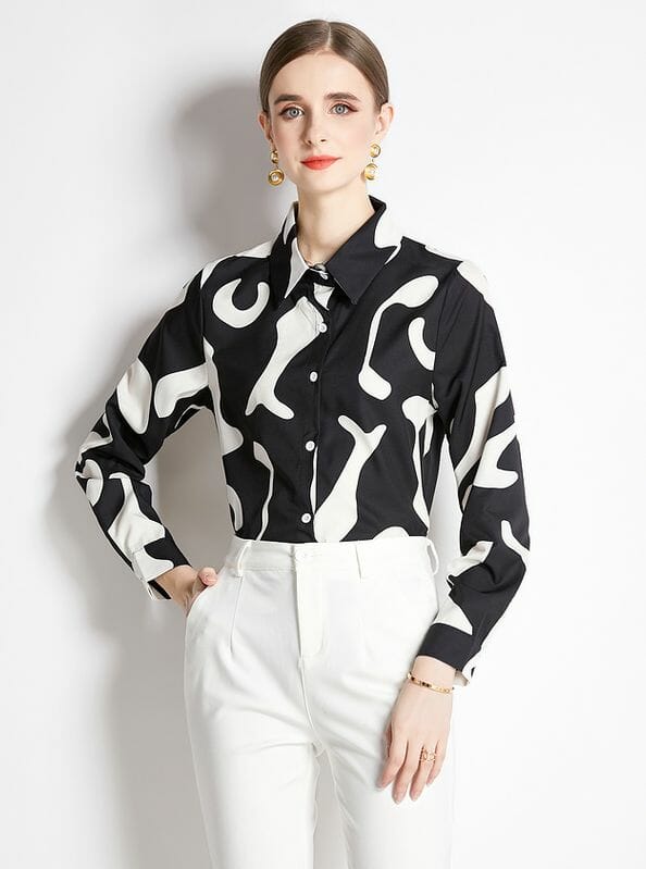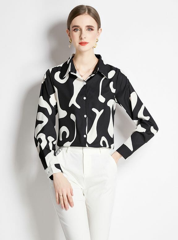 Be the first to review “Spring Color Block Printings Long Sleeve Blouse”