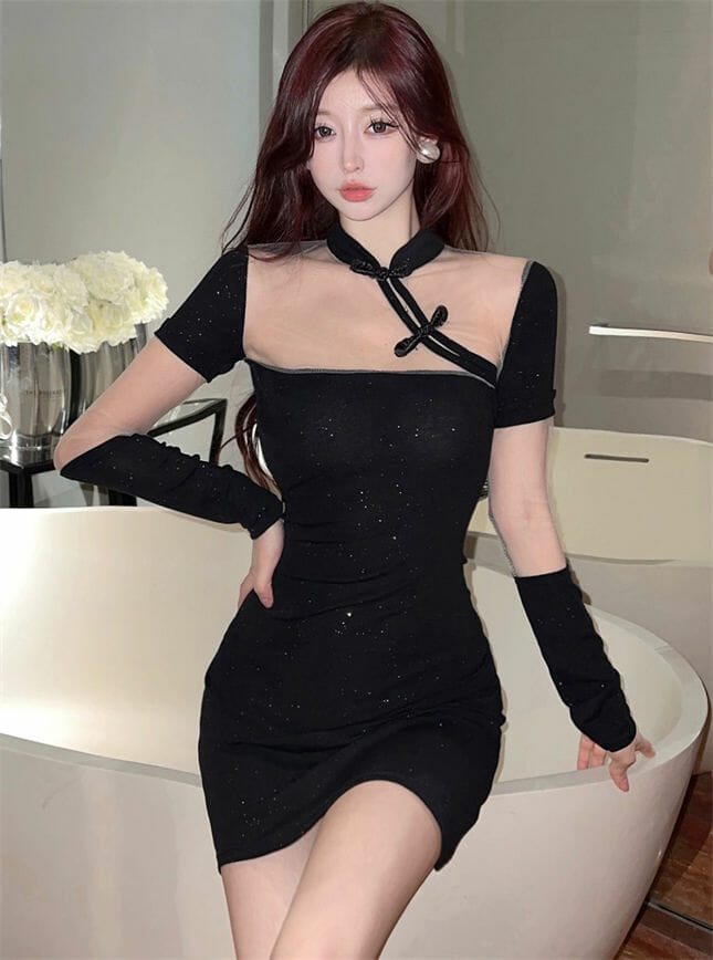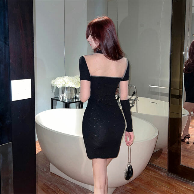 Stylish Gauze Splicing Shining Skinny Dress 6