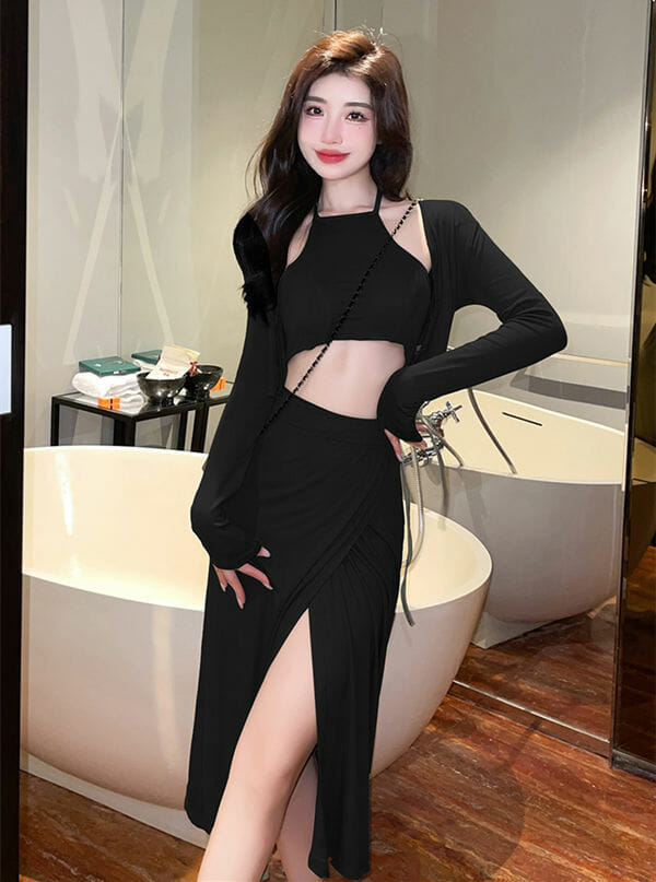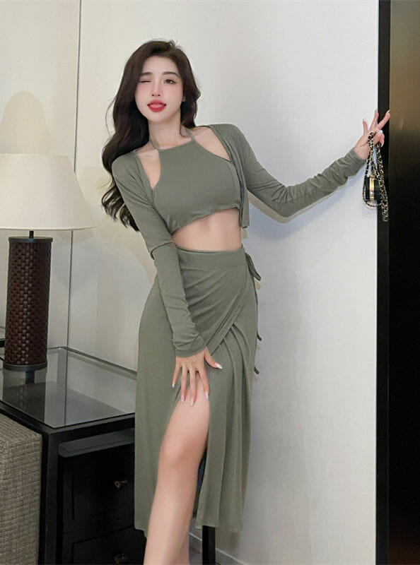 Stylish Korea Knitting Tops with Split Cotton Long Skirt 7