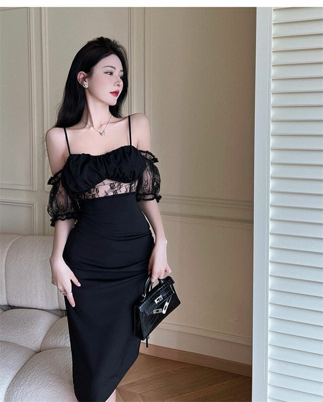 Sexy Lace Splicing Pleated Skinny Straps Dress