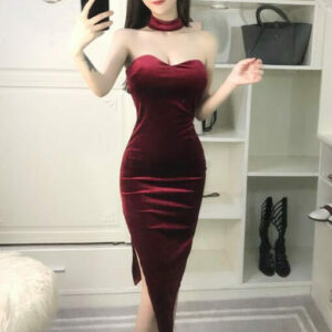 Sexy Lady 2 Colors Split Skinny Strapless Velvet Dress