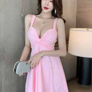 Sexy Lady 4 Colors V-neck Pleated Straps Skinny Dress