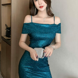 Sexy Lady 4 Colors Boat Neck Shining Skinny Dress