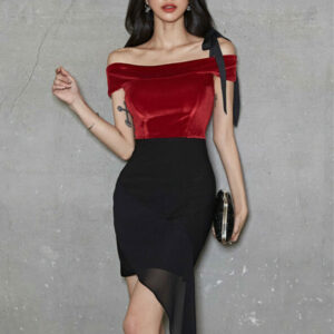 Sexy Lady Color Block Boat Neck Velvet Slim Dress