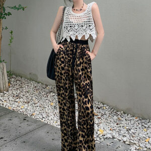 Sexy Woven Camisole with Wide-leg Leopard Casual Pants