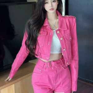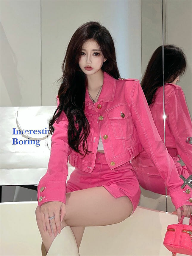 Simple Fashion Single-breasted Tweed Jacket with Short Skirt