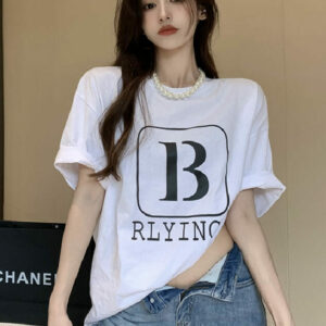 Simple Fashion 2 Colors Letters Printings Oversize Cotton Tee