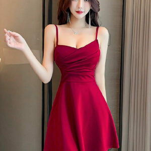 Simple Fashion 3 Colors Pleated V-neck Straps A-line Dress