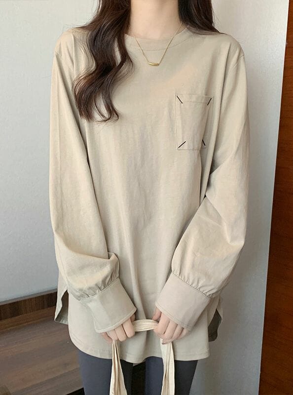 Simple Fashion 3 Colors Pockets Puff Sleeve Loosen T-shirts