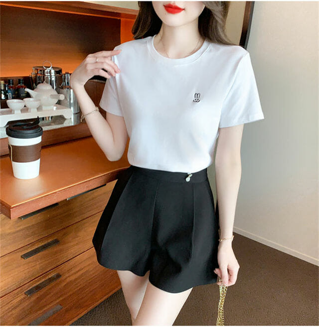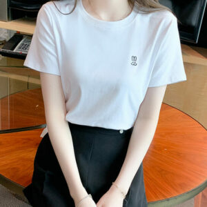 Simple Fashion 3 Colors Rabbit Embroidery Cotton T-shirt