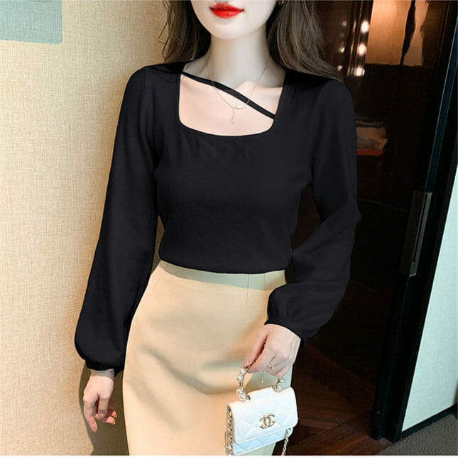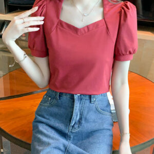 Simple Fashion Square Collar Puff Sleeve Casual T-shirt