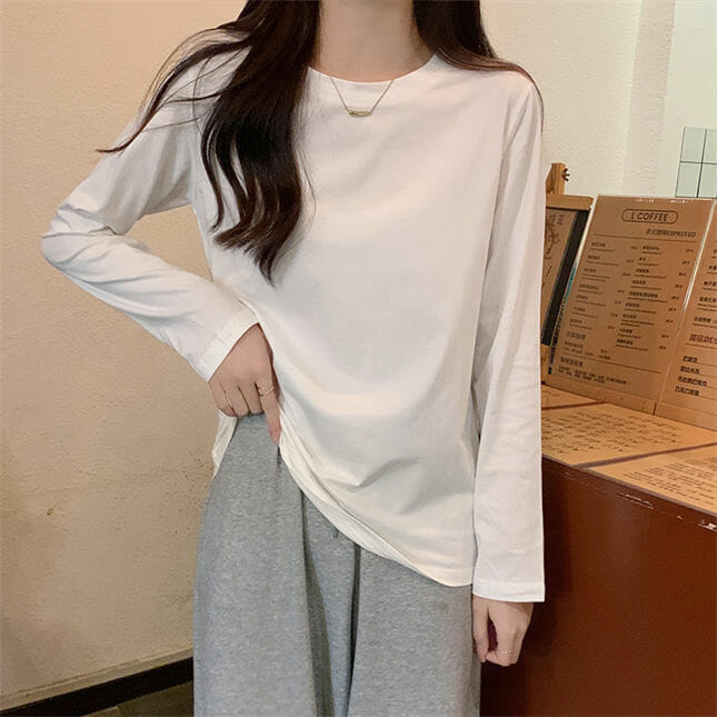 Simple Fashion 4 Colors Round Neck Loosen Cotton T-shirt