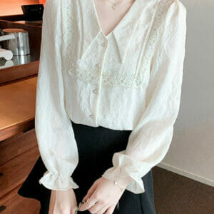 Spring New 2 Colors Flouncing Collar Puff Sleeve Blouse