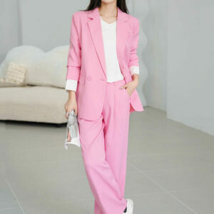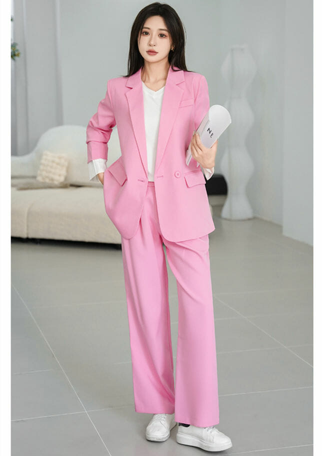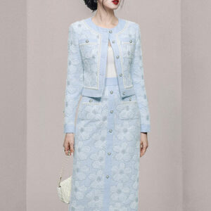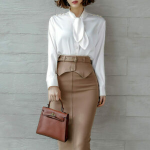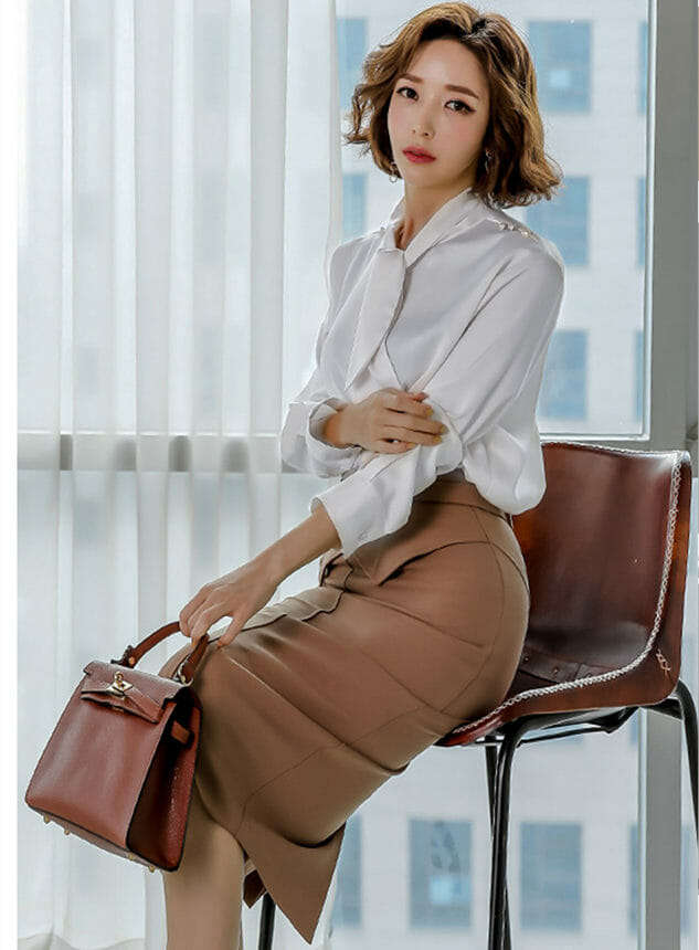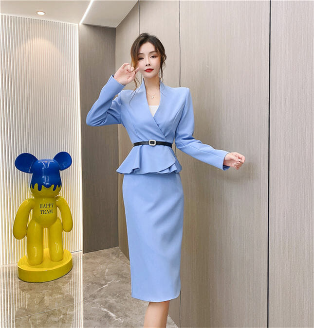 Elegant OL Tailored Collar Slim Jacket with Midi Skirt