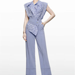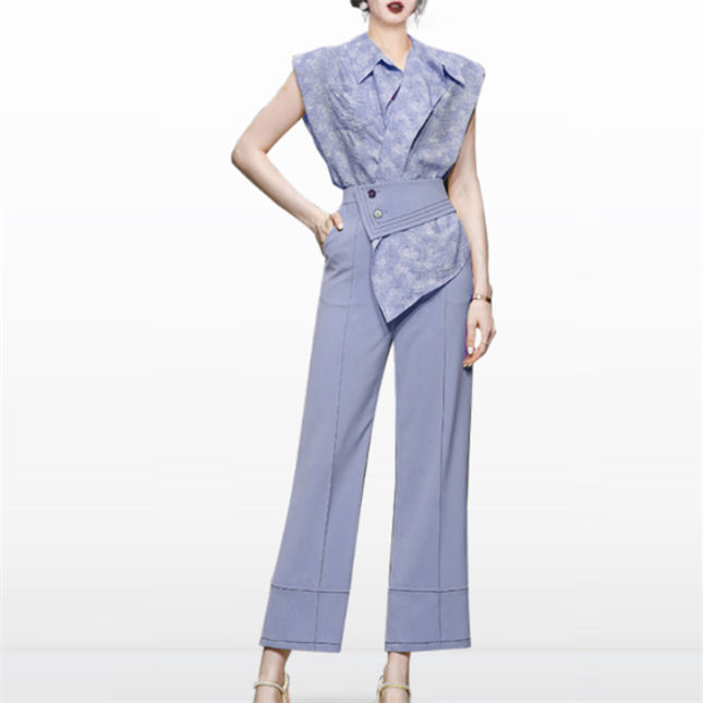 Grace Women Shirt Collar Flowers Blouse with Long Pants