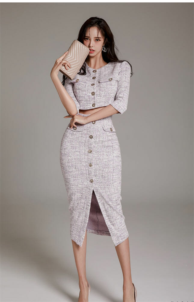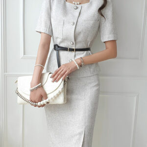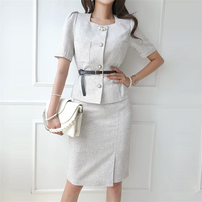 Grace Women Single-breasted Belt Waist Slim Dress Set