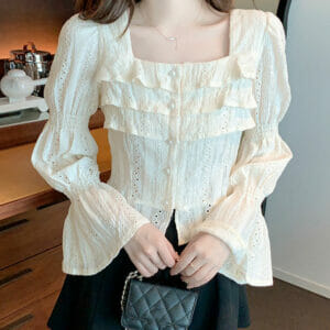 Grace Women Square Collar Layered Flare Sleeve Lace Blouse
