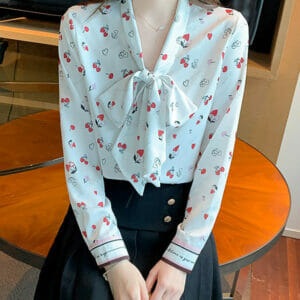 Grace Women Tie Bowknot Collar Long Sleeve Blouse