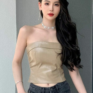 Hot Selling 2 Colors Back Zipper Skinny Leather Camisole