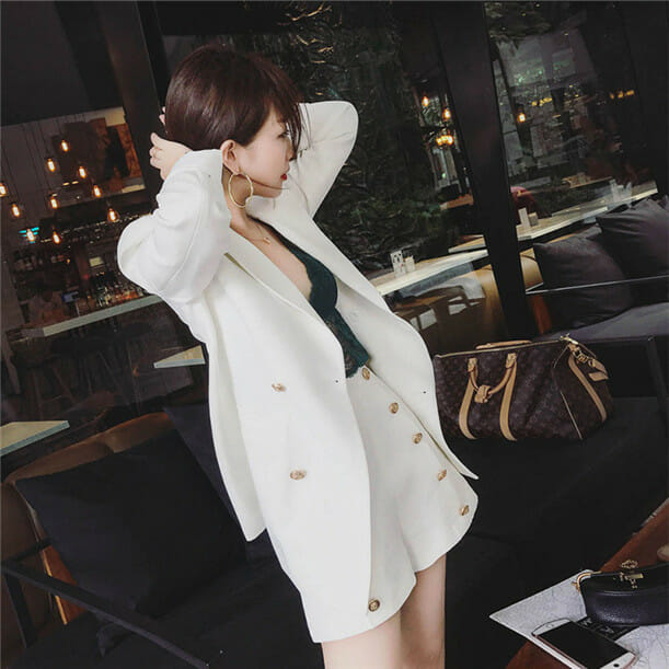 Hot Selling 3 Colors Tailored Collar Double-breasted Short Suits