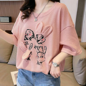 Hot Selling 4 Colors Cartoon Rabbits Batwing Loosen T-shirt